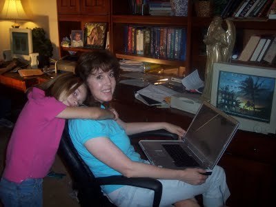 Not long ago I saw a blog that featured where fantasy writers write. Not to be outdone, I decided I should do a blog about where children's book authors write. As you can see, I frequently work with children draped around my neck. It helps with the dialogue and all that.