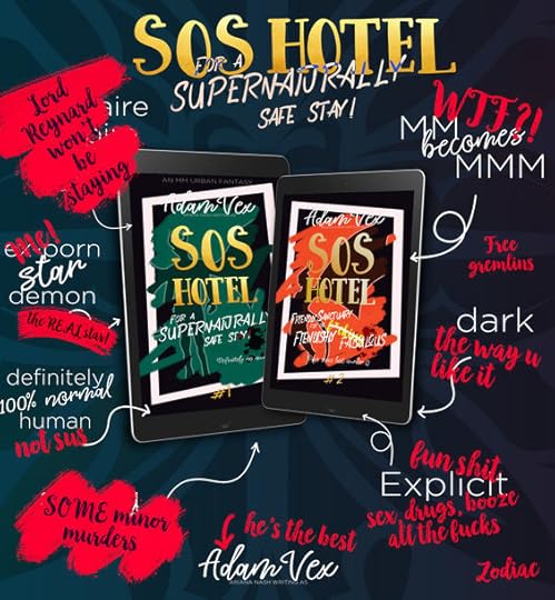 I’m sorry to all of you here (pretty much everyone) who came for the dark, angsty, gritty and real stories, and you’re now getting swamped with a sassy sex demon, his boring human, and the suave vampire daddy. If you’re not here for that, please do stick around, as there will be more dark and angsty books coming. I just need to get SOS HOTEL out of my system first.