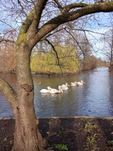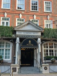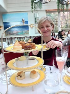 I celebrated a year of Marjorie in the way she’d have loved best: delicious afternoon tea at a posh London hotel. The Goring, which opened in 1910 around the corner from Buckingham Palace, has served royalty and statesmen for more than 100 years. It makes a brief appearance in my next mystery, Death At Chelsea. I went with a writer friend, Kathy, and strolled around St James Park afterwards, watching the pelicans on the lake.