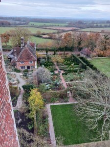 Vita had an extraordinary life and she made an extraordinary garden in Sissinghurst, Kent, not far from where I live. She and her husband Harold bought Sissinghurst Castle when it was a complete ruin, and gradually restored it, along with its beautiful gardens. I visited in winter but there was still much to see, including Vita’s writing tower, which gave me serious writing room envy! You can see some of the formal gardens from the top of the tower.