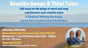 I’m thrilled to be hosting a writing and singing workshop with my good friend Katie Rose, a composer, singer, writer and choirmaster. We’ve teamed up for an afternoon of creating songs and stories on the seashore, at the lovely Downs Sailing Club on the beach in my hometown of Deal.