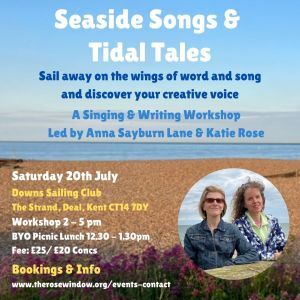 Do you enjoy a good song? Are you thinking about creative writing? Why not join me and musician/singer/choirmistress Katie Rose for an afternoon of singing and writing by the sea? Our Seaside Songs and Tidal Tales workshop is on Saturday June 20, in Deal, Kent. More information and booking on Katie’s website here: https://therosewindow.org/event/5644146/685537262/seaside-songs-tidal-tales