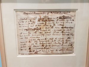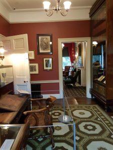 Certain rooms of the house are set up as they might have been when Dickens and his family lived there in the first years of Queen Victoria’s reign. These include the dining room, its table set for a merry dinner – Dickens famously loved to entertain – and the study, with a desk used by Dickens towards the end of his life. Here you can see pages of hand-written manuscripts from some of the novels, and pity the compositor and printer who had to make sense of the close-written handwriting.