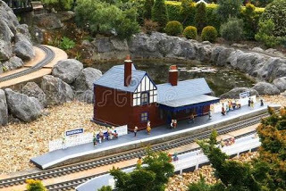 CHUFFER TRAIN The landing craft circled, its cameras focussed on the train below.“A primitive form of transport,” the Commander decided, and sent Phtam to make First Contact.Slightly wobbly on her unfamiliar legs, Phtam walked along the platform and approached the nearest figure. “Good day.”The man didn’t even acknowledge her. She tried each person in turn with no success. A train chuffed into the station but still no-one moved, and when it left, so did Phtam.“They’re all dead,” she reported. “Probably a virulent virus.”The ship left hurriedly – without spotting the sign on a gate --‘Model Village closed today’................................................................................................Apologies to the real people - if they ARE real - on this station, but Sandra Crook's photo reminded me of a model village on the Isle of Wight which I visited recently with my granddaughter.Thanks as ever to https://rochellewisoff.com/ for hosting Friday Fictioneers - if you care to follow the links from her blog you can read other stories prompted by Sandra's photo.PS to Sandra - is that Corfe Castle in the background of your photo?