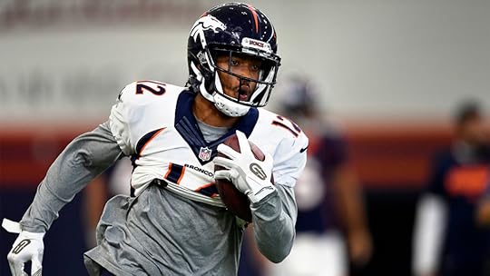 Denver Broncos wide receiver Brendan Langley #12 runs with the ball after pulling in a pass during training camp at UCHealth Training Center on July 29, 2019 in Englewood, Colorado.