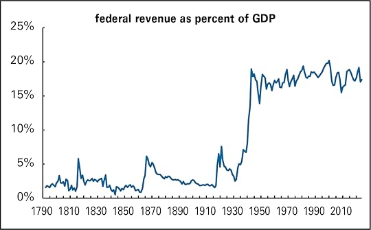 Instead, let’s look at tariffs over the long sweep of history. According to a useful factsheet from the Congressional Research Service, tariffs were an easy way to collect revenues in the early history of the country, which didn’t have a developed administrative structure. There were only so many ships docking in so many harbors to unload goods. So, taxing that merchandise was not much of a technical challenge. The government was small and didn’t need that much revenue anyway.