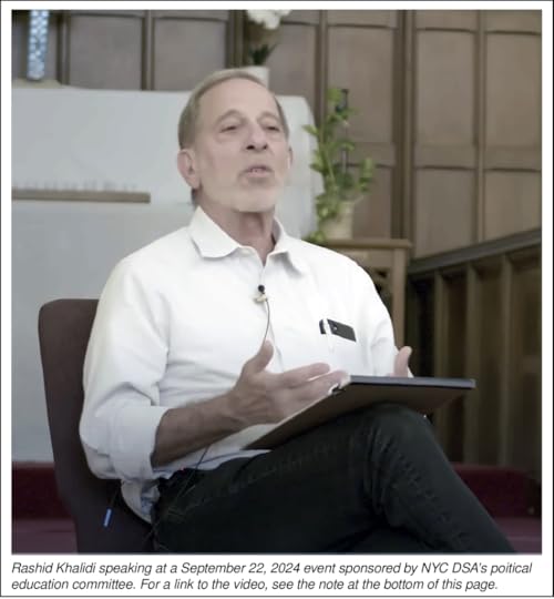 Video of Rashid Khalidi’s conversation with Carrington Morris, a September 22 event organized by New York City DSA’s political education committee, is available here.