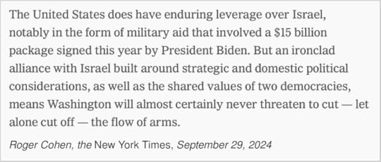 Well, I don’t think anything is possible in the immediate future, given what you just said. Israel suffered a series of traumatic shocks on October 7th. It was the first invasion of Israeli territory since 1948. It was the largest civilian death toll in Israel since 1948. It was the most severe defeat of Israel’s military, certainly since 1973, and 800 civilians were slaughtered. It was a massive intelligence failure. The traumatic shock of all of that is still reverberating in Israel and has very much hardened Israeli attitudes. The slaughter of 42,000 people in Gaza, as you can imagine, has hardened Palestinian attitudes and the ongoing slaughter of, whatever the toll is, 1,200 people, most of whom as always with the Israelis are civilians, is going to harden attitudes in Lebanon and other parts of the Middle East.