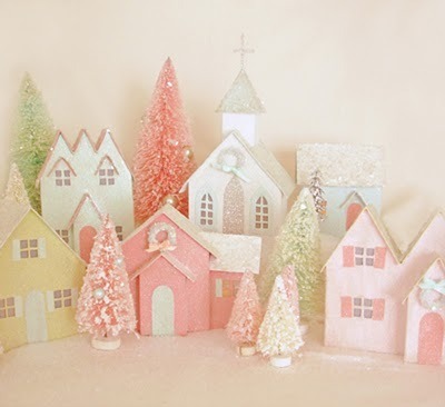 3. Glittered Miniature Village Houses (Via Twig & Thistle)