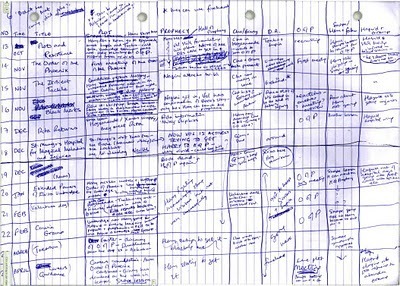 While I work feverishly to finish up the final scenes, here's a little food for thought. It's the organizational matrix purportedly penned by J.K. Rowling to plot out one of the Harry Potter books. Interesting method, no?