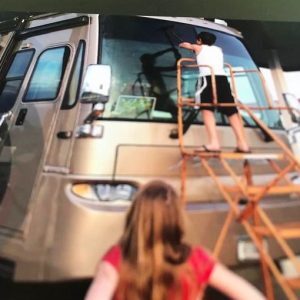 We were checking into the RV park. An older gentleman who worked there guided us into our designated spot when Chris heard a loud noise on what appeared to be the top of the RV. Chris opened the sliding window and asked the man, “Is everything okay?” The man motioned Chris to keep backing up. As Chris backed up, the noise continued. A branch was cutting the fiberglass edge of the roof, opening it like it was a can of corn. Chris asked again, “Are you sure everything is okay?” The man reassured him it was, so Chris continued to our spot. Chris got out and climbed the ladder to the top of the roof and saw the damage. Sigh. It would definitely be our last RV family vacation. Ever.
