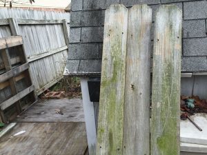 The next thing you should know is that I lost three sections of wooden fence during a summer storm. The fence had a nice weathered gray patina. It seemed such a waste to throw it away. So I didn’t. I stacked it behind the back fence, broken pieces and all. I do not have a problem with hoarding. You never know when one may need old weathered gray wooden fence.