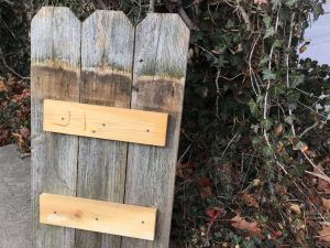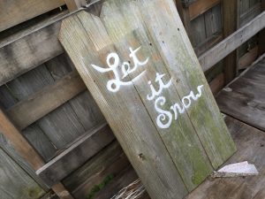 Putting two and two together — no snow sign, broken fence, and you can see where this is going. I’m going to make a “Let it Snow” sign out of broken fence, and you can too! I have the fence but you can pick up fence at any home store or save your money and use pallets.