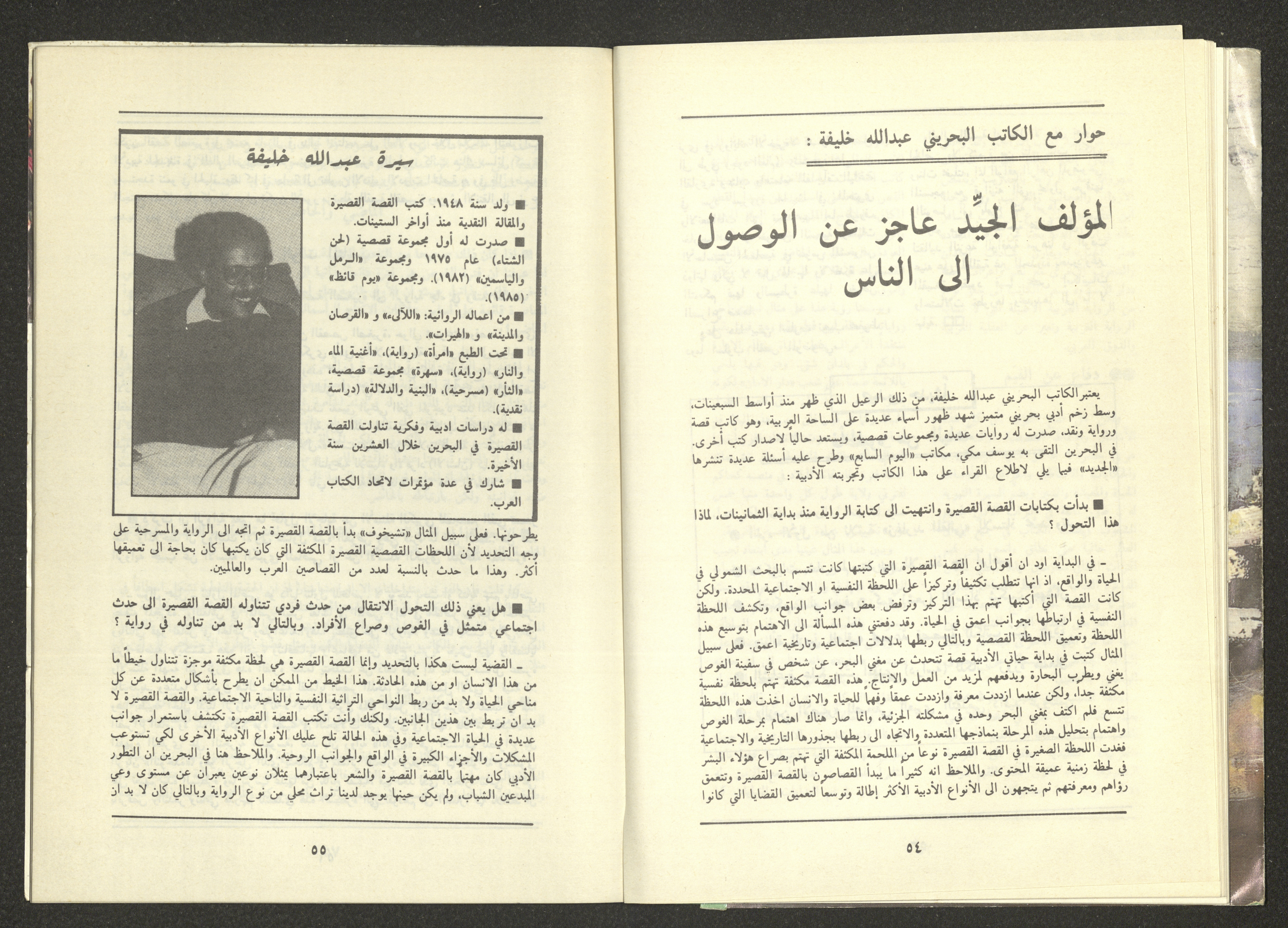مجلة «الجديد» التابعة للحزب الشيوعي الإسرائيلي، تنقل مقابلة لعبدالله خليفة نشرت اصلاً في مجلة «اليوم السابع» سنة 1988.