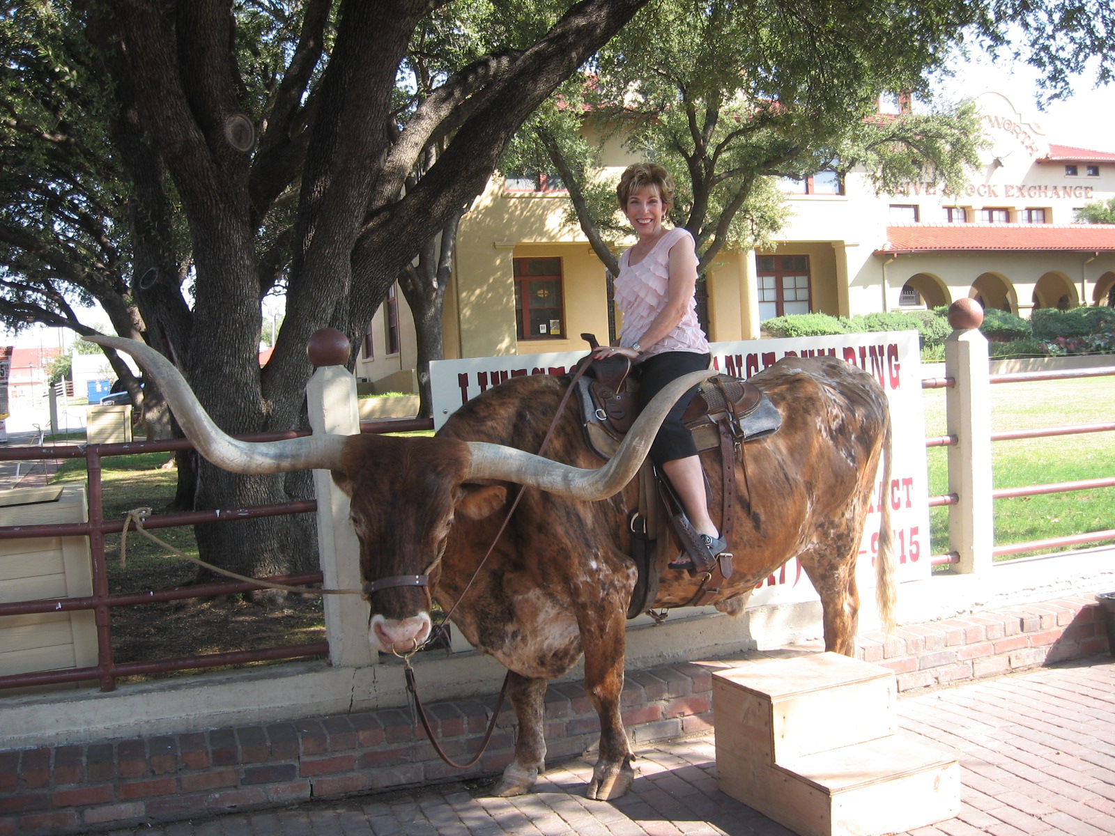 Or climbing on this longhorn bull with his 6-foot horn span. All in the name of research. :-)