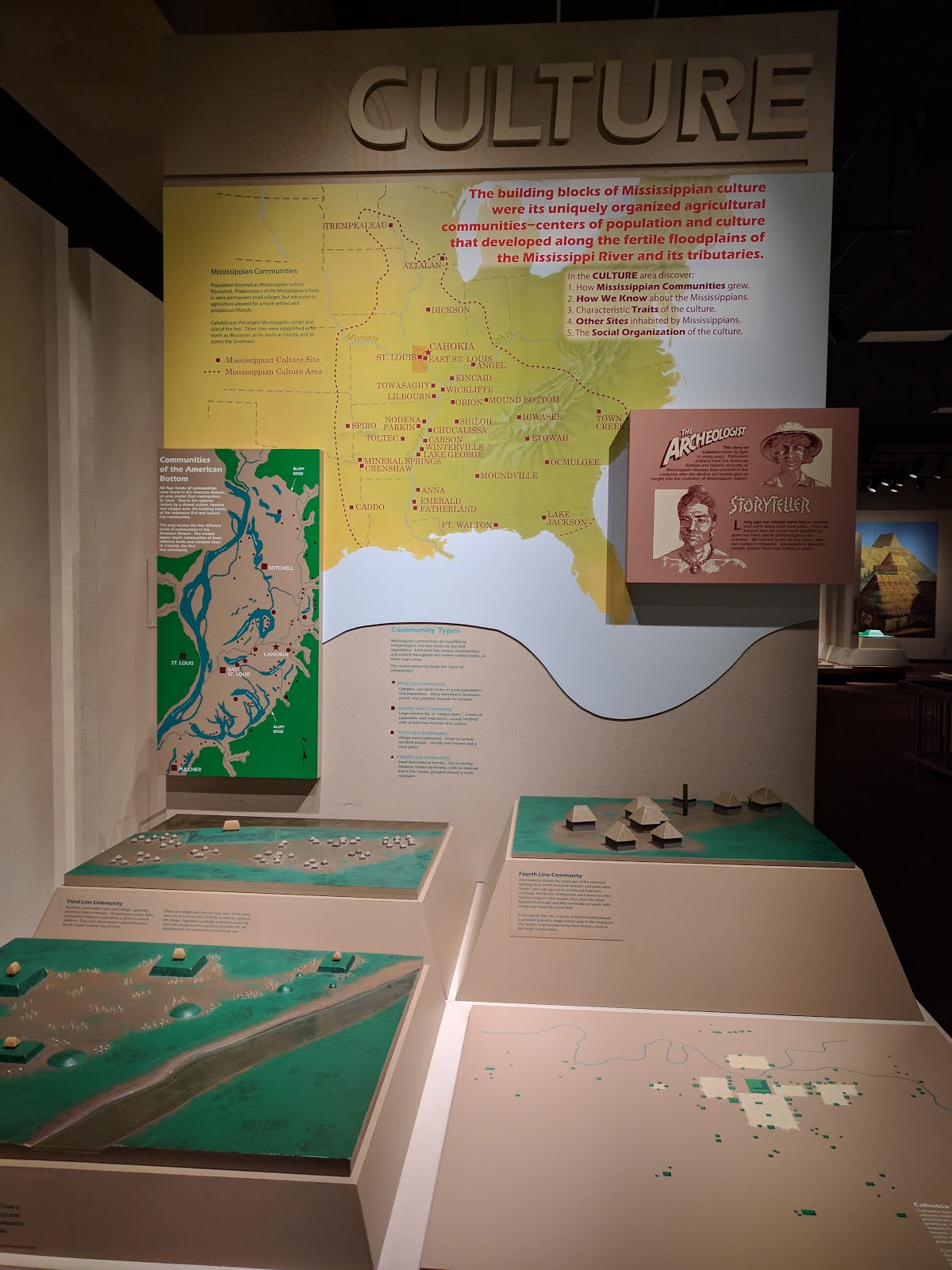 Today, Cahokia mounds site has many well-marked trails. Most of the mounds are covered in vegetation. Turkeys, dears and other wildlife frequent the area. I visited during the coldest day of the winter, so visitors were limited in numbers. A museum inside the visitor center shed some light on the culture, weather, location and history of Cahokia as well as its relationship to other Mississippian civilizations at the time.