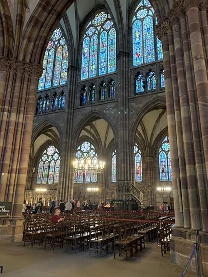 This stained glass isn’t from that church (It’s from France). And I’m not offering music, today.