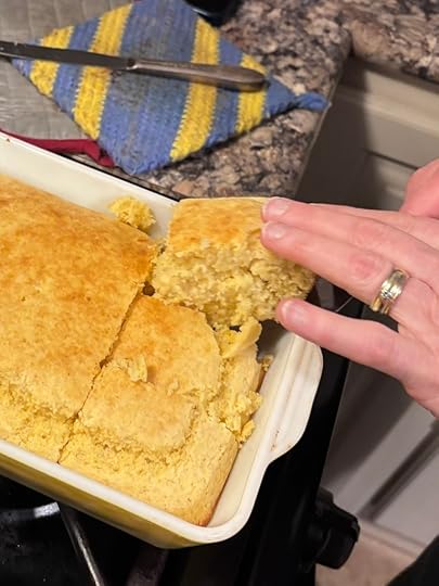 The cornbread will be in the oven soon.