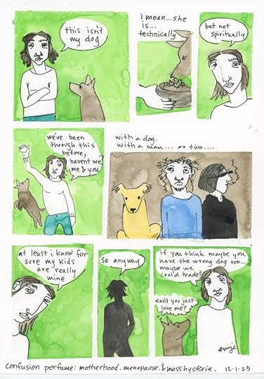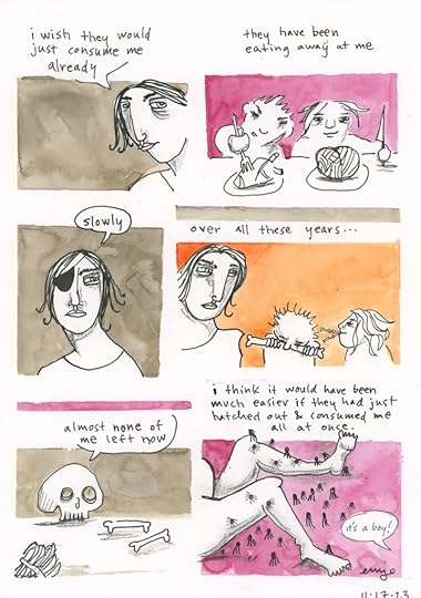 while making this comic…it occurred to me that a male character i had made up (to represent a variety of bad boyfriends) really resembles my ex-husband (whom i met after writing these comics.)