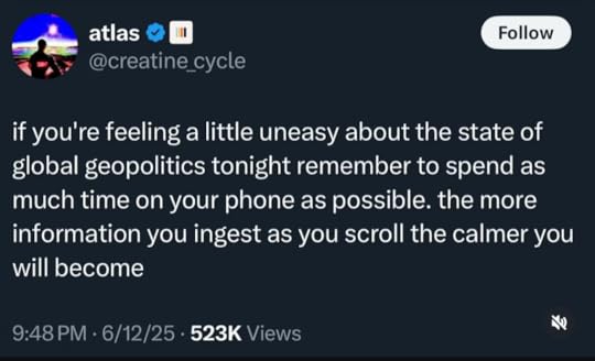 And I don’t say this (only) because this post is coming to you as we careen through America’s big beautiful highways in excess of seventy miles per hour, with my laptop on my lap and my fingers making with the words as I look out at the unusually green Western US landscape.