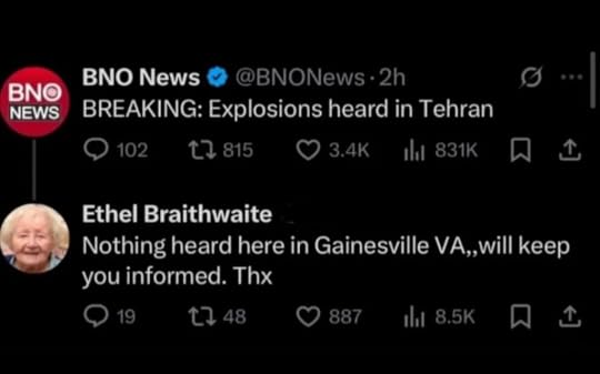 So, are the idiots on Twitter and elsewhere claiming that Iran is “just” Israel’s fight and that we shouldn’t be fighting Israel’s battles and blah blah blah idiots, evil, or simply Russian operatives?