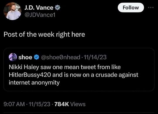 *I won’t lie. I have a post, maybe two about this whole thing I want to make. But here’s the thing: I’ve been on the Fight! Fight! Fight! team for a long time. M. C. A. Hogarth though? She’s the nicest person I’ve ever known, always trying to find kind reasons for what the other side does. And yet, she’s now here. These are the times we live in – SAH*