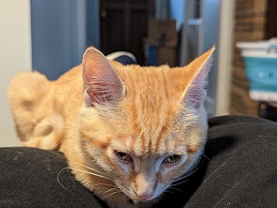 That picture above is Helena-kitten sleeping on my shoulder and effectively pinning my left arm down.