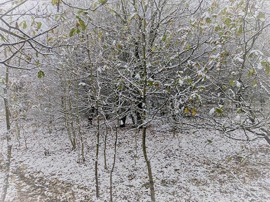 This poetry collection is an interesting one for me. It was a spur-of-the-moment decision to focus on wintry poetry after I took some photos of the wood where I used to walk my dog, Molly (she’s who Our Paused World is dedicated to!) covered in snow. It was such a beautiful place and I just felt this desire to create something inspired by it, which is why it was so important to me to include the photographs in the print edition of the book! You can see them below, too.