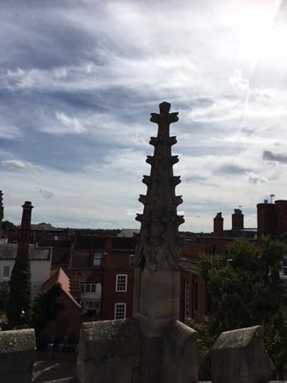 So, it was swing the short legs over another very high, shaky and dodgy ladder and onto another roof. I did wave at an ant – which was actually a human being but we were very high up but then decided maybe that wasn’t a good idea. The stained glass windows were stunning and I think I could have spent all day looking at them but since I only had my lunch hour for this amazing and terrifying experience we moved on. You guessed it – up the high, shaky, dodgy ladder, walk over the roof and back down the high, shaky, dodgy ladder, over the roof and then halfway down the dodgy, small, stone, dark staircase and onto another roof. Yes, he did ask us if we wanted to go on top of the part, I cannot remember the name of and we said yes! ((I’m sure I’m not the only one thinking this Peachy but maybe you should avoid writing anything which involves research!))