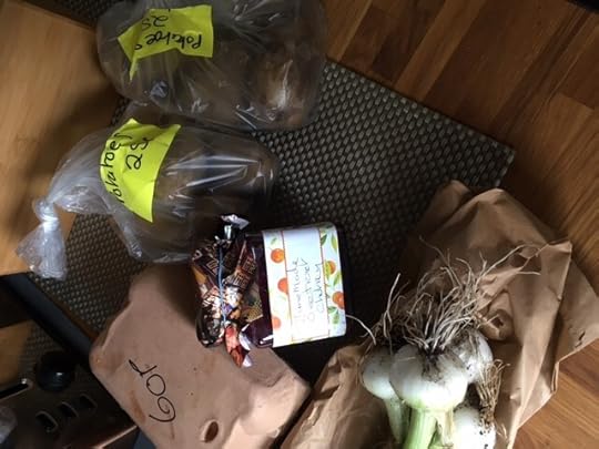 In the first lock we find a few honestly boxes with some lovely food in, so whilst the lock is filling and there are no other boaters around, we peruse the wears and come out with some spring onions – freshly picked, 6 eggs, some spuds and a beetroot relish – all for £4. I’ve now added emergency cash to the little bag I carry to the locks. In it I have my radio so I can let the know Captain what’s happening, my phone and a pen and paper for writing down ideas as I’m waiting for the locks to fill.