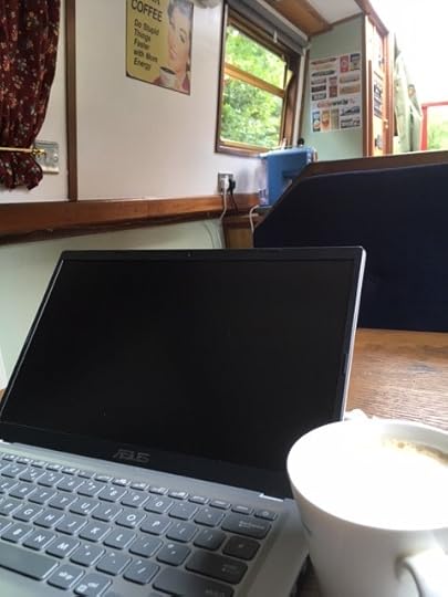 I crack on with some writing as I’m determined to get my fantasy book finished and we cruise for a little longer before mooring up just past the town for the night and finally i finished the first full edit of my book just as the battery died… ((never mind your book Peachy get some pics of the canals!)) All right grumpy! I will tomorrow, just let me bask in this moment after it’s taken me years to finish my series. Can never please some people. I shared a picture of my writing desk – i love seeing where other people write. Tomorrow I’m on the tele – well, sort of…