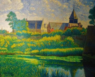 Painting: Jozef Quisthoudt, Belgian (1883-1953); St.Peter's church in Ypres; Naïve style