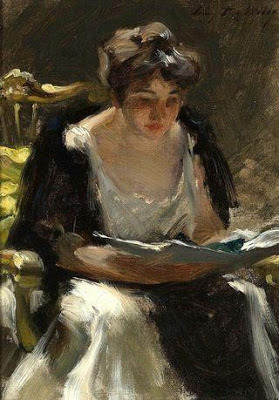 Painting: Irving Ramsay Wiles (1861-1948) Woman Reading