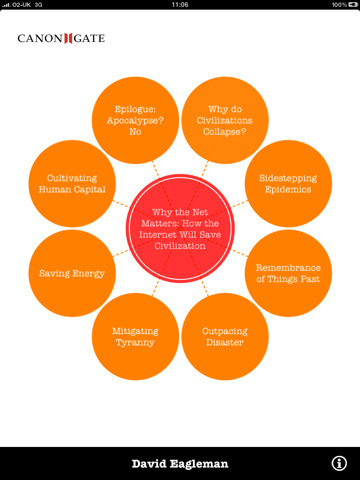 Why the Net Matters represents a novel step into the future of digital publishing: it is written as an iPad app that introduces a new way to navigate a non-fiction narrative. By offering random-access chapters, interactive 3D figures, and the ability to zoom in and out of the details of the argument, this represents a new direction for digital publishing.
