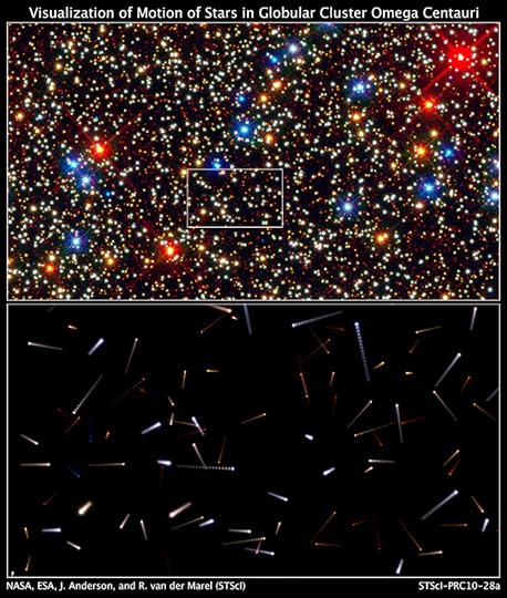 There is an interesting bit of astronomy published over at PhysOrg.com sent to me by way of Danny Hillis and Tom Shannon. Apparently astronomers focused Hubble on a certain region of Globular Cluster Omega Cantauri several times over 4 years. They were then able to calculate how each of those stars will move in the next 10,000 years. You can see a video of this after the jump on their site here. It reminds me of our recent blog piece on how the constellations will change over the next 50,000 years. All of this is of interest to us on the Clock project as one of the main references we use is an image of the night sky for one of our slowest moving dials. We have to choose stars that do not move very much over the next 10,000 years to use as a good reference in the 26,000 year precessional cycle.
