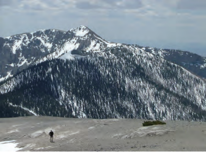 Figure 3. Late spring in the Snake Range, Scotty Strachan walks up Mt. Washington with Mt. Lincoln behind him.