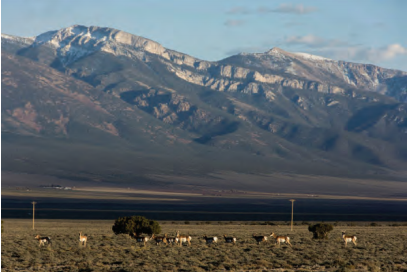 Figure 5. The western escarpment of the Snake Range from Spring Valley. Mt. Washington on the left, and Mt. Lincoln on the right. Photo: Scotty Strachan