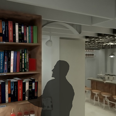 We don’t talk about it much, but this project also improves our office setup, redesigned to serve a staff that has roughly doubled since we moved in (though our full-time staff is still only in single digits). That spiral staircase leads up to the office, and, yes, there is a secret door in the bookshelf.