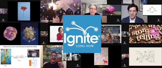 On October 20, 02020, we heard 12 of them in a curated set of short Ignite talks given by Long Now Members. What’s an Ignite talk? It’s a story format created by Brady Forrest and Bre Pettis that’s exactly 5 minutes long, told by a speaker who’s working with 20 slides that auto-advance every 15 seconds (ready or not).