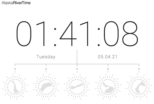 The Alaska River Time project of Jonathon Keats brings about an intentional unification between nature’s experience of time and our perception of its passing, while bringing to light our direct impact on it. We are both forced to bear witness and invited to engage. It is not unlike the time realized in our bodies, but here through known bodies of water.