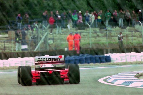 Unfortunately, that was a sign of things to come for Martin, who then described his debut race for the team as “the nearest I had ever come to dying.” This was after his engine’s flywheel came off as he accelerated out of turn 3, which then triggered an almighty accident involving himself, Eddie Irvine, Jos Verstappen and Eric Bernard. Indeed the McLaren new boy would quickly come to learn the Peugeot engine had a habit of destroying itself, often with dramatic results. Even so, Brundle’s had high hopes for the British GP that year only for his engine to detonate itself off the start in spectacular fashion. “I think I did 383 metres…and BBQ half the grid” the furious Englishman later claimed.