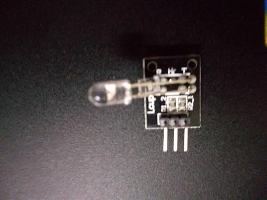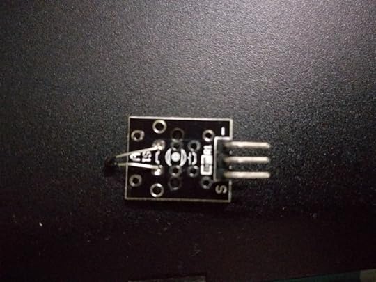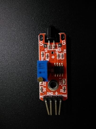 This sensor uses a bright IR LED (infrared) and a phototransistor to detect the pulse of the finger.