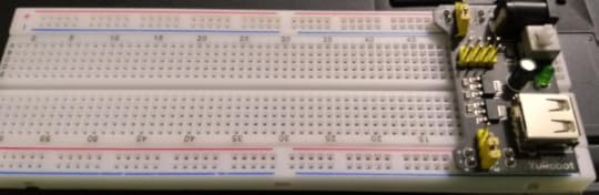 Breadboard and wires are used to create connections between development board and IOT sensors.