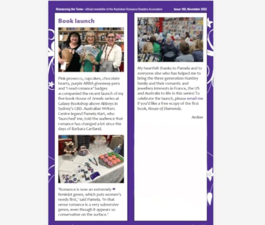 House of Jewels series in the newsMy thanks, also, to the Australian Romance Readers’ Association (ARRA) for featuring my recent House of Jewels launch in their November newsletter and thanks again to so many of you who were able to attend!
