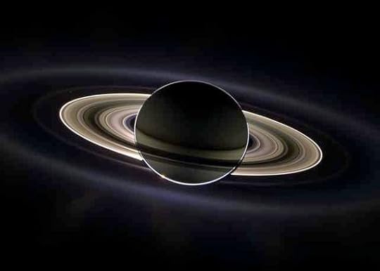 In the distance, light from the refineries reflected across the Ligeia Mare. Ahead the icy rings of Saturn caught the light from the sun behind them and filed the western sky with a diffuse, heavenly glow. The planet itself was almost completely black and the rings circled it like shimmering crystal around a black pearl.