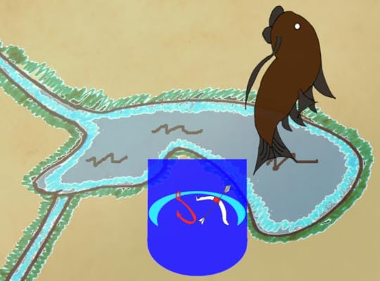 Although there are many stories of unusually large fish in the lake, it should go without saying that the fish depicted on the map is purely an artistic device. There are no records of fish so monstrously large that they take up half the lake.