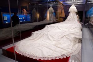Prince Charles and Princess Diana’s wedding in the summer of 1981. I didn’t wake up early enough to watch the procession, but I remember the first image I saw when I turned on the TV in our living room was of the backs of people seated in a high-ceilinged chapel and a white wedding dress train that seemed to stretch most of the way down the aisle. That train! It was obnoxious and over the top and the stuff of royal fairy tales, at least until the fairy tale unraveled.