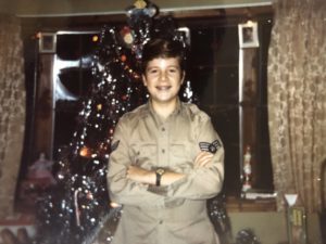 Here is Rene, circa 1969, wearing his father’s (whom we refer to as “Pop”) shirt from when Pop was a Sergeant in the Air Force in the early 1950s. Just nine years later, Rene would be a military policeman in the Air Force, just like his beloved father.