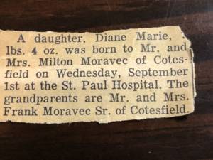 Fifty-three years ago this summer, I took my time in typical diva fashion to emerge into this world, arriving three weeks late, at 3:30 in the morning. My college journalism professors would be proud, since I still have the newspaper clipping from the Howard County, Nebraska, edition of “The Phonograph Herald,” announcing my birth. By the way, I weighed 7 lbs., 4 oz. at birth, not 4 oz. My birth announcement is no doubt the only time in my life when I will happily publicly disclose my weight.