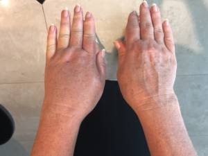 I have chronic lymphedema in my left hand and wrist. Lymphedema is caused by a blockage in the body’s lymphatic system, which is part of the immune and circulatory systems. There are clusters of lymph nodes throughout the body that serve as filters to attack and destroy germs and foreign particles in lymph fluid.